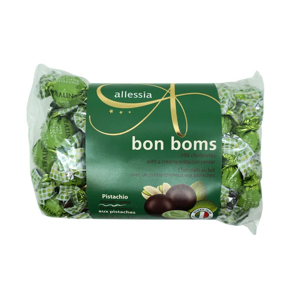 - Enjoy the luxurious taste of Allessia Bon boms Assorted milk chocolates with crispy hazelnut and milk centres, available in a 454g pack.