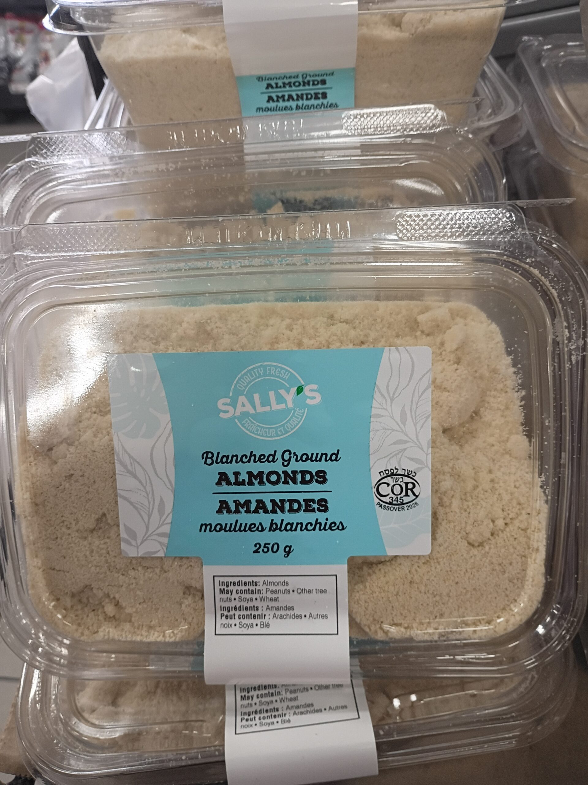 - Product:Â Blanched Ground Almonds (Almond Flour).